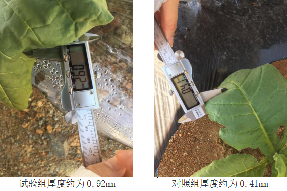 綜合檢測后發(fā)現(xiàn),經(jīng)我公司土壤修復后實驗組煙苗生長狀況良好,50天葉片數(shù)量、長度、寬度、厚度均優(yōu)于對照組,實驗組中煙田土壤酸化、板結現(xiàn)象得到改善。試驗組中煙葉少數(shù)花葉病株基本得到控制,未出現(xiàn)缺株和營養(yǎng)不良現(xiàn)象。對照組出現(xiàn)少量缺株和營養(yǎng)不良煙苗?,F(xiàn)階段發(fā)現(xiàn)煙田缺水現(xiàn)象突出,部分煙田因缺水導致煙苗生長過慢,下一階段需加強煙田田間管理做好補水和病蟲害防治。